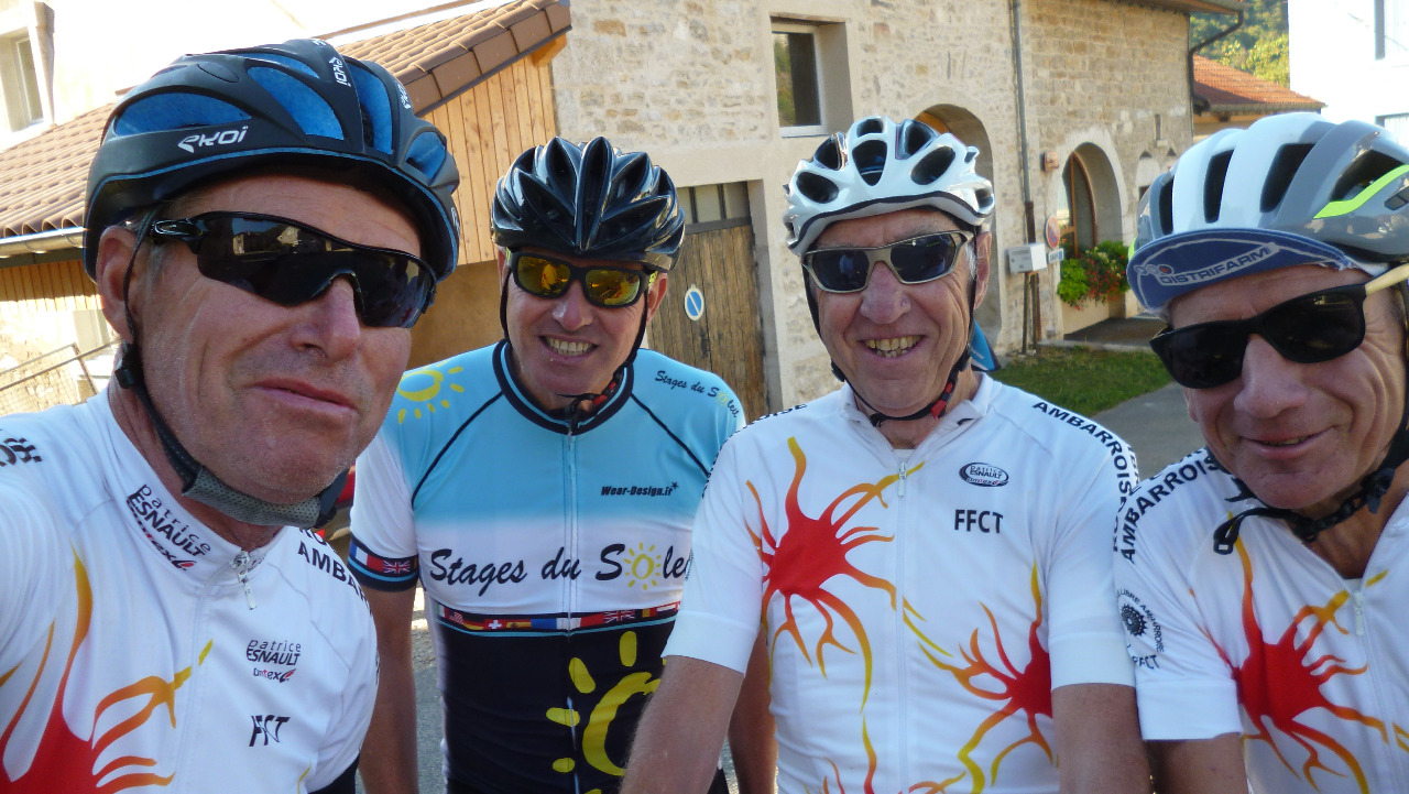 Nous étions 4 au départ pour une virée de 160km et plus de 2500m de dénivelé avec un repas à l'auberge du alc Genin.